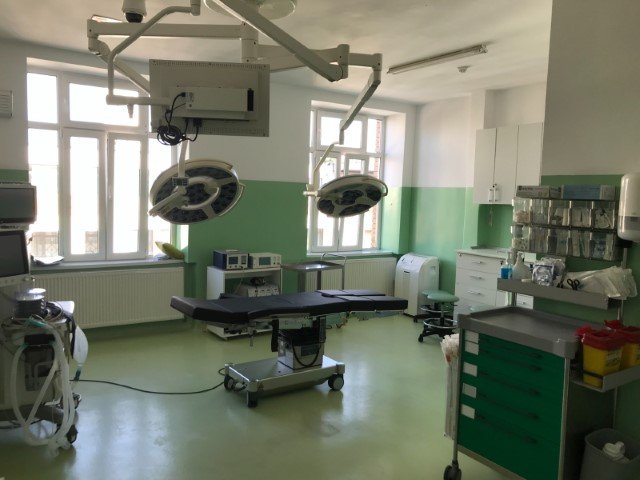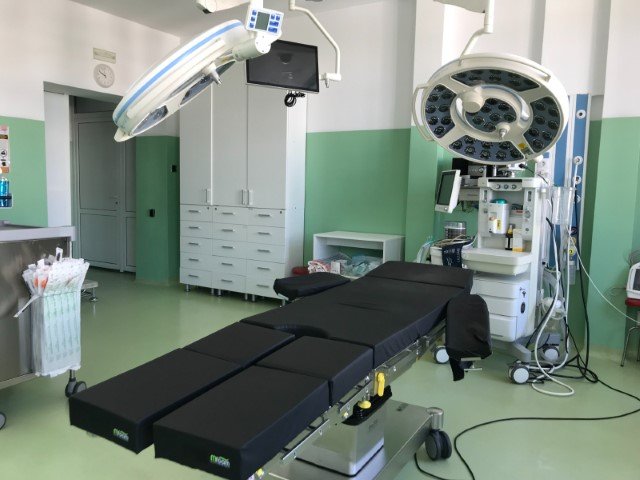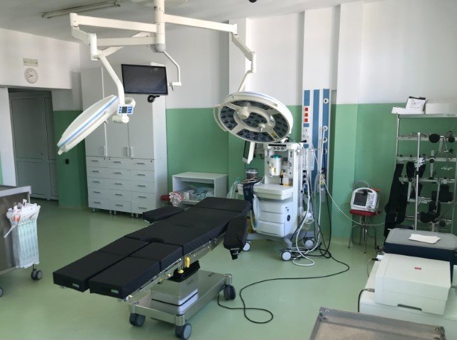 Monitoare mobile, aparate de anestezie, troliu de urgenţă, electrocautere, osteotom, micromotoare chirurgicale, lampi scialitice, mese de operaţie, negatoscop, aparate UV, fibroscop, defibrilator, unit-uri stomatologice, aspiratoare chirurgicale mobile.